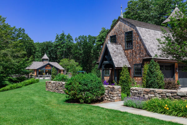 Description Six Gables our original design, is a distinctive blend of Shingle Style and Gothic architecture located in the Boston countryside. The recent project involved adding a barn for cars and storage, a pool, a pool house, and enhancing the…