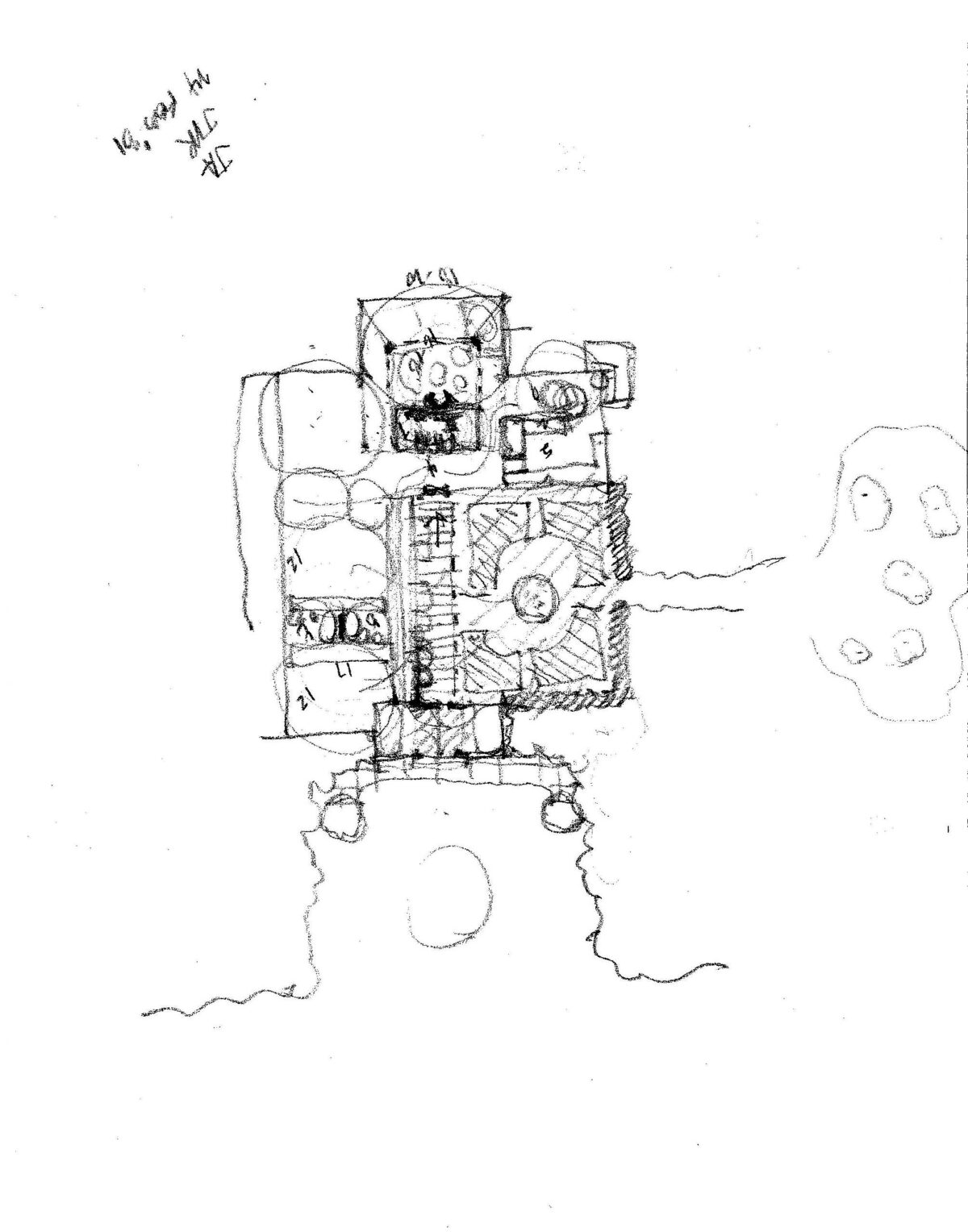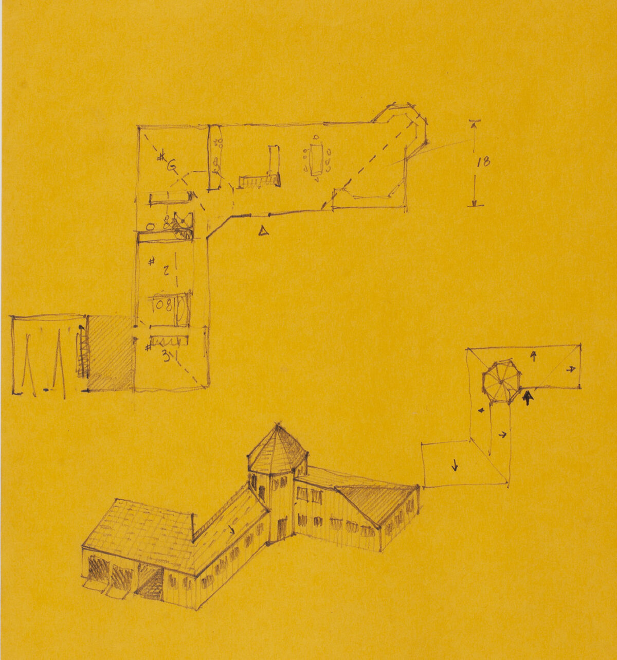 Architectural drawings fall into several categories and serve different purposes. The earliest drawings in a project are rough diagrams with which we try out relationships of rooms to each other and to the site. Next, still in rough sketch form, the diagram takes shape as a building, in three dimensions. At this stage many aspects of the design—the experience of arriving at and moving through the building, how daylight is admitted, and what the flavor and materials of the building may be—are in our heads but not necessarily intelligible to others. Subsequent drawings allow us to get these ideas down on paper and show our clients. We later move from sketch form to drafted drawings, showing at each step more detail, for presentation to regulatory bodies, for pricing by contractors, and finally for construction. We often revert to freehand sketches, even during the construction process, to work out details that need further consideration.
