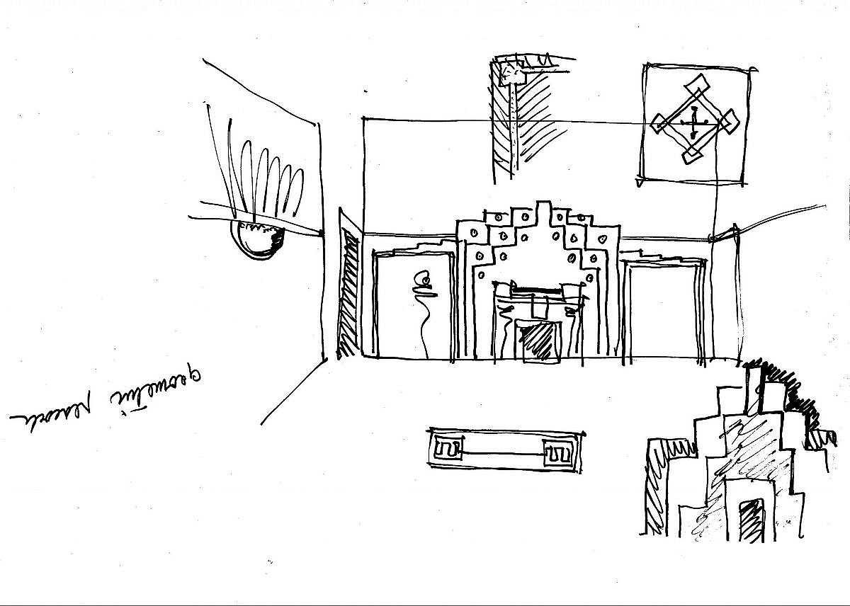 Each type of drawing has its own interest. However, as we look back over drawings we’ve done we’re most strongly attracted to the early sketches, which reveal the germ of an idea. Even in our more developed presentation drawings, such as John Tittmann’s watercolor interior perspective, we try to capture the spontaneity and unselfconsciousness of the early sketches to convey the mood of the building.