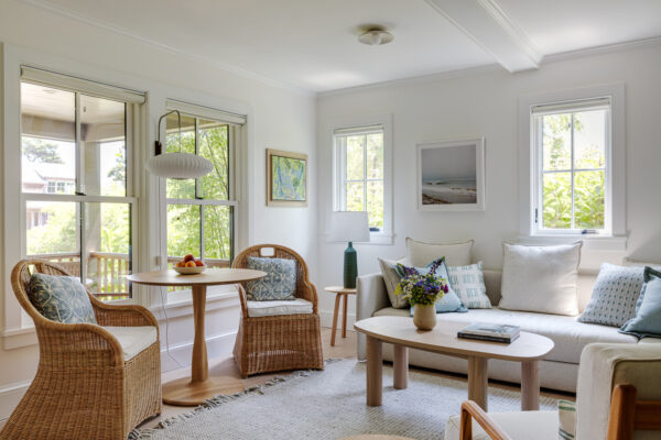 Bay Cottage consists of a four-bedroom house, which we renovated and enlarged, a new two-bedroom guest house, and a new pool. The changes were at the same time comprehensive and subtle. Much is different, but someone who knew the house before would still recognize it.