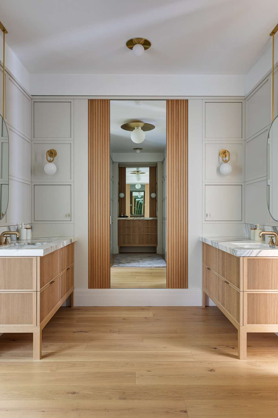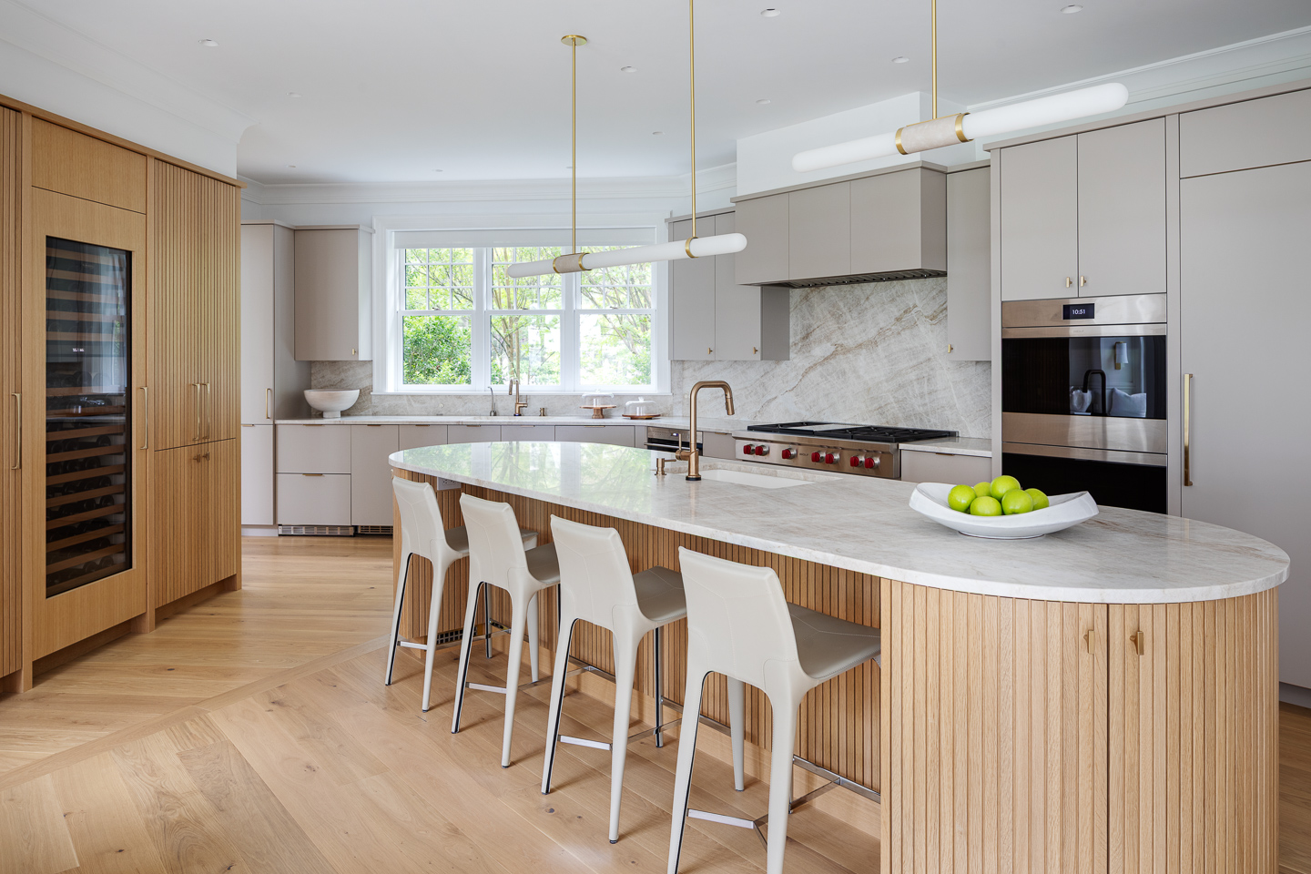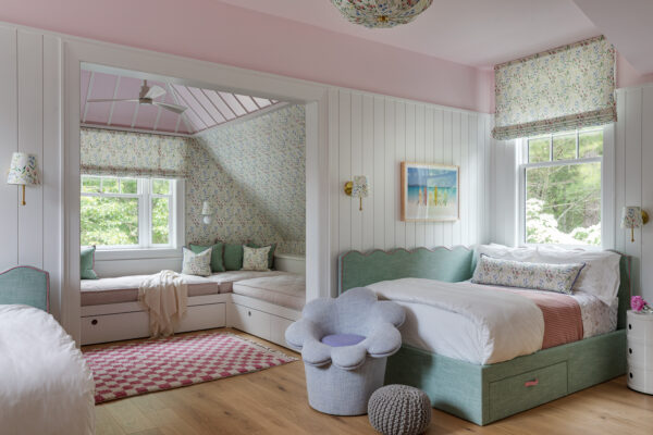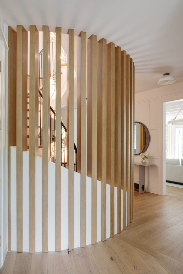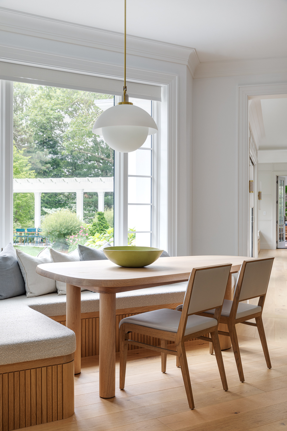 A small Greek Revival house was given a new foundation and a wing connecting to a new barn and embracing a protected garden. A long axial view from the front door through the new wing makes a small house seem bigger than it is.