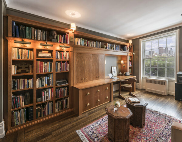 The door of this landmark building, when built in 1891, featured a fan light and side lights with elaborate leaded glass, which were removed in the 1960’s. Our project was to reconstruct the original leaded glass pattern, based on photographs found in the Harvard University Archives.