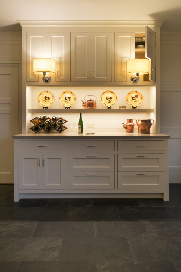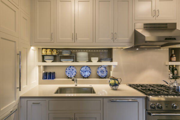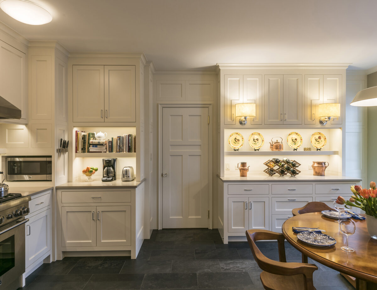 Down a sweep of lawn and pasture, this big house looks like a collection of small houses. Greek Revival-inspired pavilions are connected by a Shingle Style link, uniting various regional traditions. The elliptical ceiling of the kitchen eating area looks like a shallow, tented canopy.