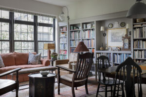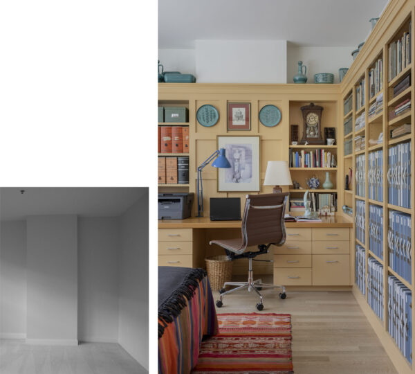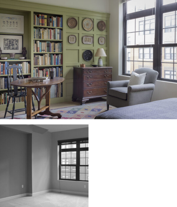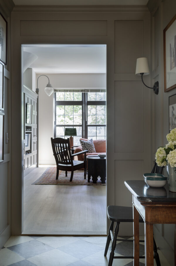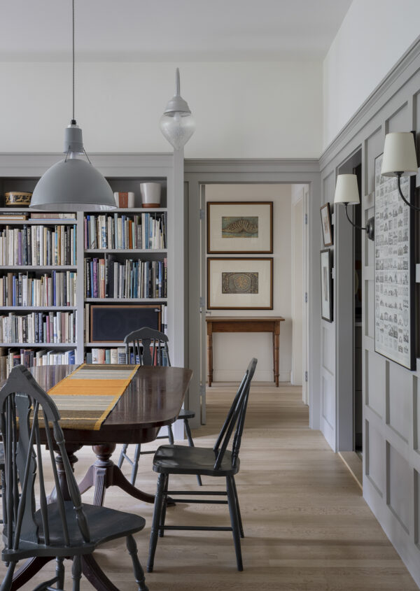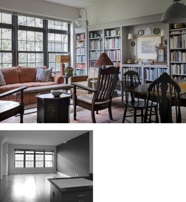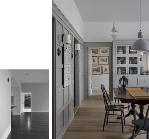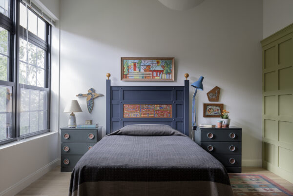 In a converted candy factory, now condo complex, this project makes efficient use of a small space through built-in cabinetry. Wainscoting highlights the tall ceilings, and a Swedish-inspired color palette accentuates the southern light.