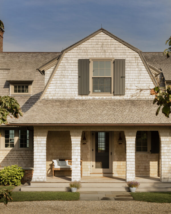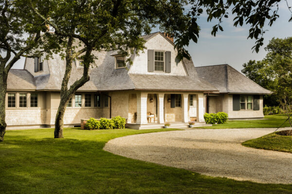 This house draws on many sources, from the American Shingle Style to Japanese pavilions, to Frank Lloyd Wright, and unites them into something new. A Gothic entry arcade extends forty feet out from the house in a welcoming ceremonial gesture for the modest vacation house.