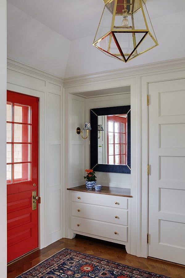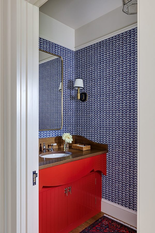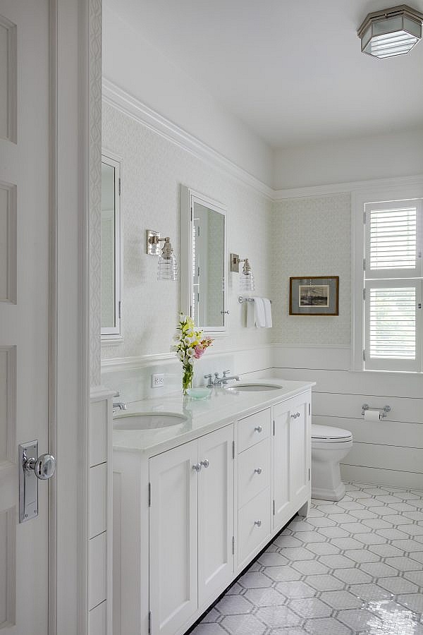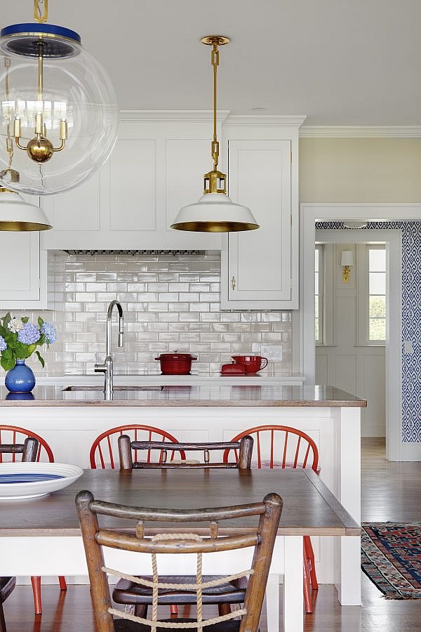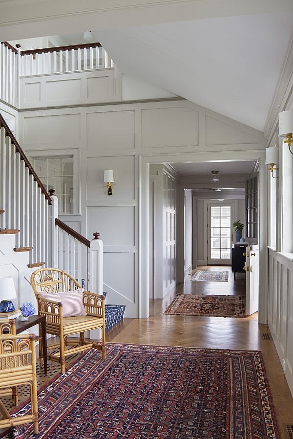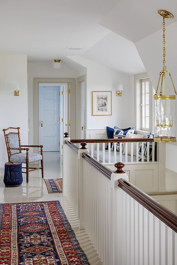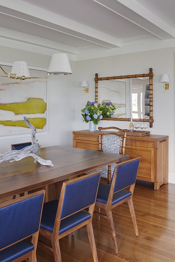 Island Cove House keeps a low profile on the horizon. On the driveway side it rambles along like a cottage that grew over time, while on the water side it is more ordered. Weathering shingles and gray-brown trim help the house blend with its surroundings. Heating and cooling are delivered by a geothermal system, and much of the electricity comes from solar panels.