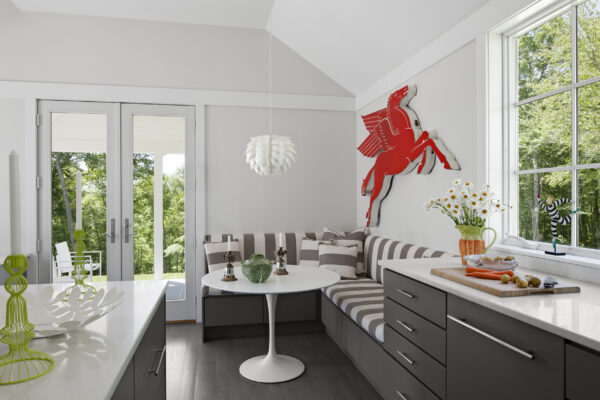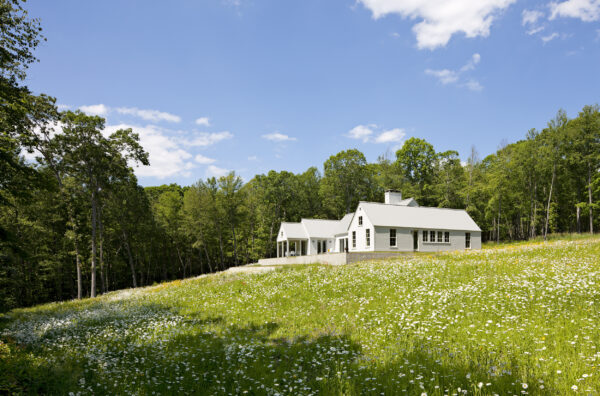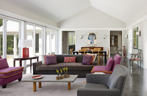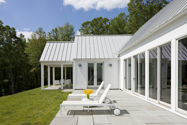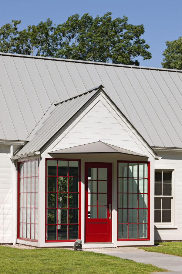 This house draws on many sources, from the American Shingle Style to Japanese pavilions, to Frank Lloyd Wright, and unites them into something new. A Gothic entry arcade extends forty feet out from the house in a welcoming ceremonial gesture for the modest vacation house.
