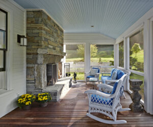 In the tradition of New England farmhouses that evolve over time, we added wings which extend the house into the landscape and include a new living room, studio, and an indoor “endless pool.”