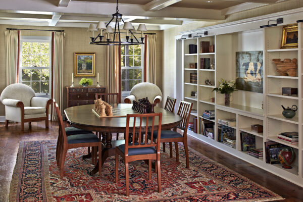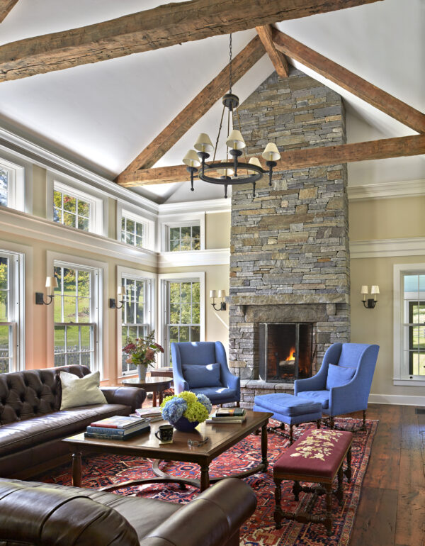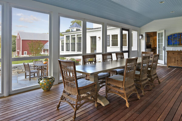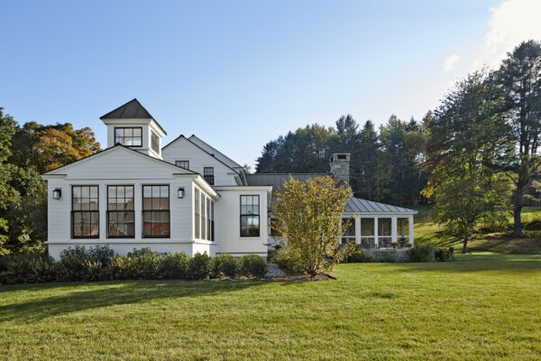 In the tradition of New England farmhouses that evolve over time, we added wings which extend the house into the landscape and include a new living room, studio, and an indoor “endless pool.”