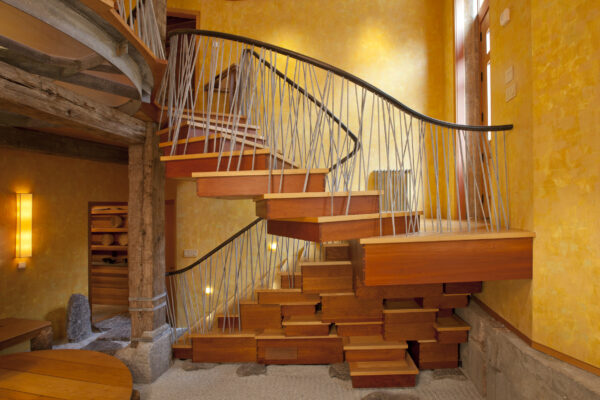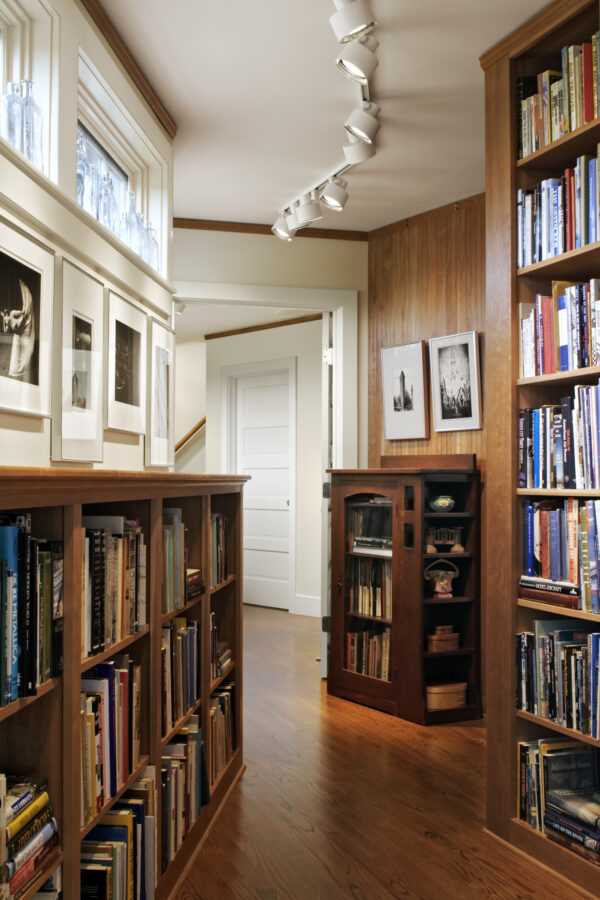This eclectic and innovative design re-imagines how to live within a traditional 5-story Boston townhouse. Some floors were removed and the basement excavated to create new double-height spaces. A new stair animates the space with a collage of seemingly randomly stacked boxes that tumble between the two levels.