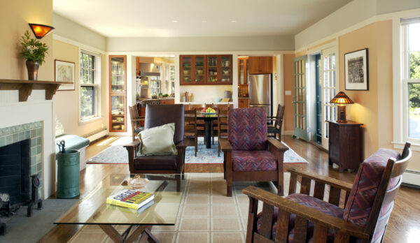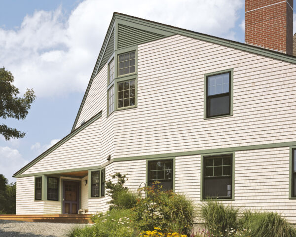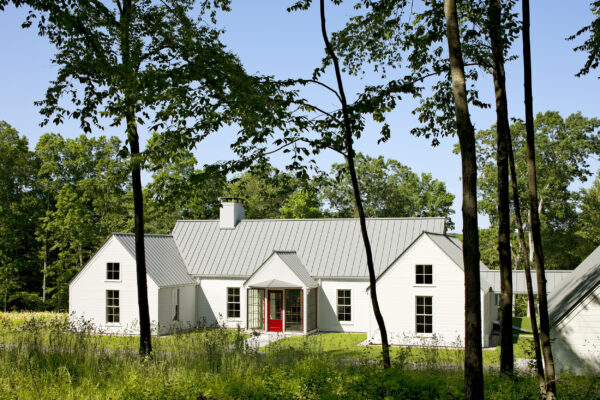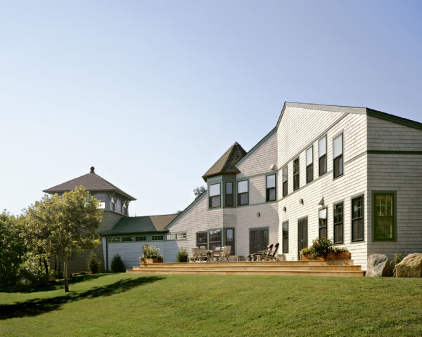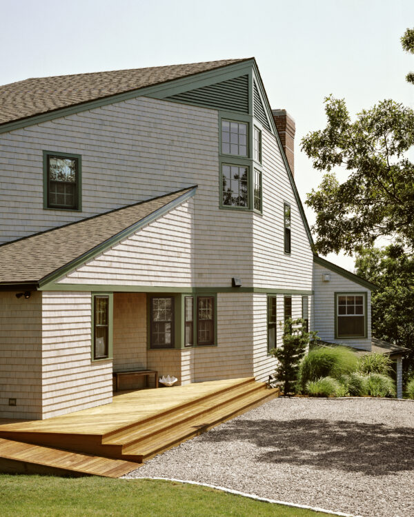 Lantern House is a modern interpretation of the New England vernacular: taut, simple forms with pitched metal roofs and white-painted wood siding. The glassy, lantern-like entry, with its prow-shaped canopy, signals the open, expansive space within.