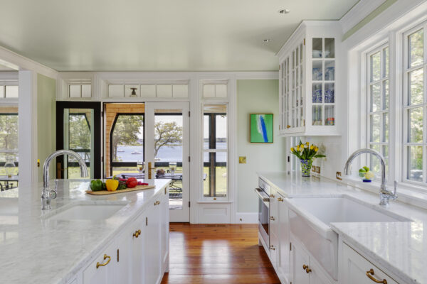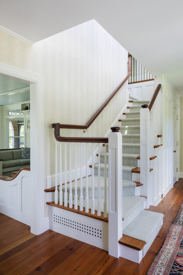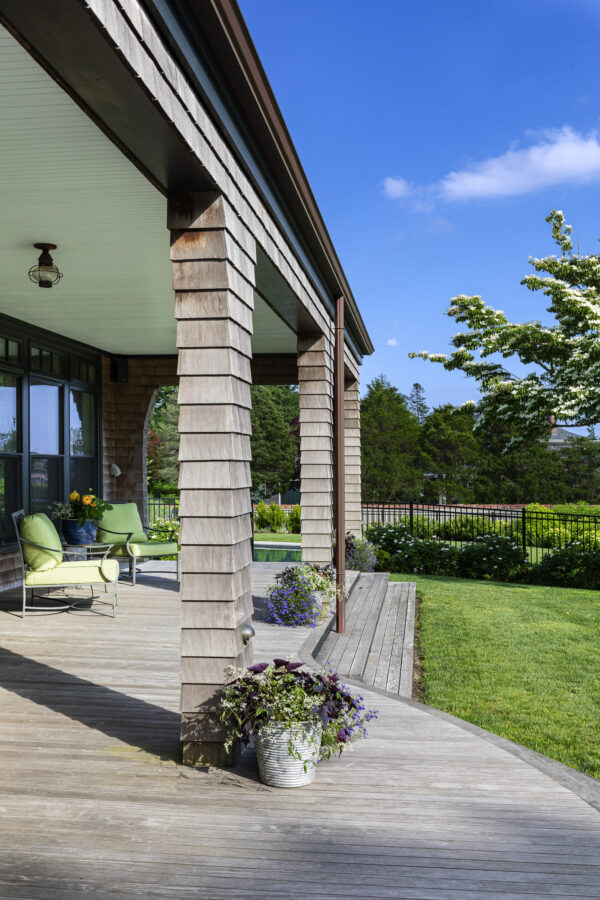 In the tradition of New England farmhouses that evolve over time, we added wings which extend the house into the landscape and include a new living room, studio, and an indoor “endless pool.”