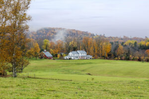 This Vermont Farmhouse sits on a gentle meadow with broad views of the Green Mountains.